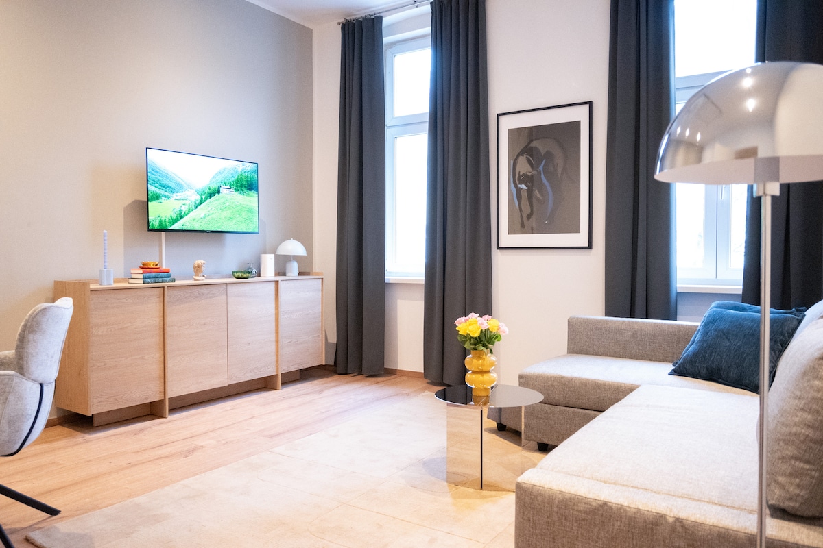 Elegante e ampio appartamento situato in una zona tranquilla vicino al centro città. Due camere da letto, due servizi igienici separati, ampio bagno, spaziosa cucina e un soggiorno con bovindo. È ben collegato con i mezzi pubblici ed è disponibile un parcheggio sotterraneo (non adatto a veicoli di grandi dimensioni). La zona commerciale centrale e diversi parchi sono raggiungibili a piedi. Goditi un soggiorno spensierato nella città di Baden, con ottimi collegamenti di trasporto per il centro di Vienna.