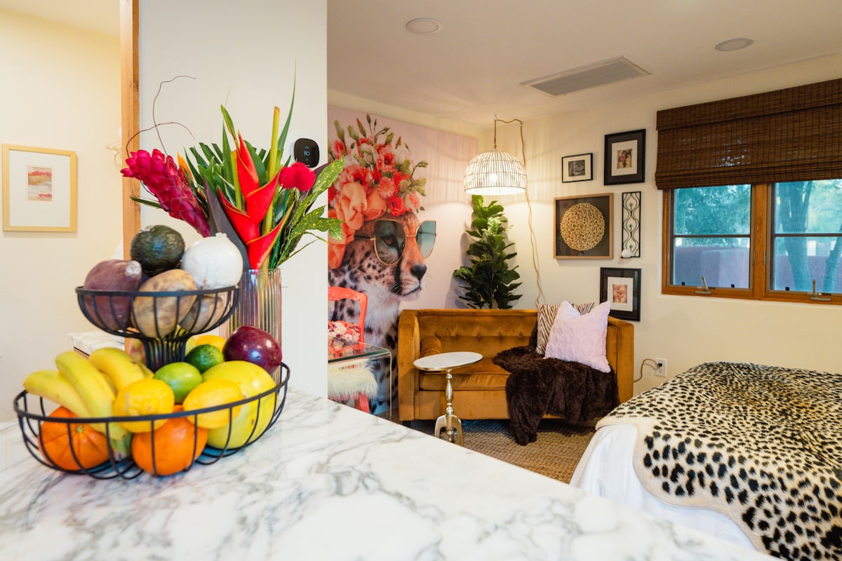 Lo spazio: Benvenuti a Palm Paradise, il vostro rifugio rilassante nel cuore della città vecchia di Scottsdale. Ristrutturato nell'ottobre 2024, questo appartamento unisce un elegante design desert-boho con tutti i comfort di una casa, creando uno spazio bello e funzionale. Rilassati sull'accogliente divano componibile in velluto a coste verdi, perfetto per un pisolino, o esci sul balcone privato per ammirare spettacolari viste sul tramonto sulla Camelback Mountain. Entra nella tranquilla camera da letto con letto king-size e lenzuola di alta qualità.