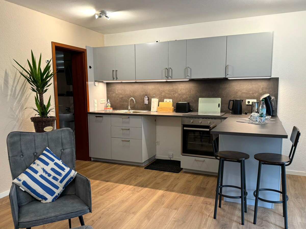 Ti diamo un caloroso benvenuto a Buch, nel nostro nuovo, confortevole e indipendente appartamento, con una bella veranda e giardino. Con la porta della terrazza aperta puoi goderti il sole, la luce e la natura. Nella stagione fredda, il riscaldamento a pavimento e le assi in rovere garantiscono il massimo comfort. Il tuo bagno è direttamente collegato al soggiorno. L'appartamento è accessibile tramite un accesso privato. Il piccolo angolo cottura si trova nel soggiorno ed è ad uso esclusivo.
