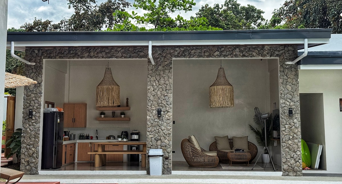 Una casa vacanze ispirata a Bali con piscina in pietra naturale a Quezon City è un mix unico di comodità urbana e fuga tranquilla. L'area di 400 m ² darà spazio per creare un'atmosfera rilassante con l'atmosfera di Bali: spazi all'aperto e vegetazione lussureggiante.