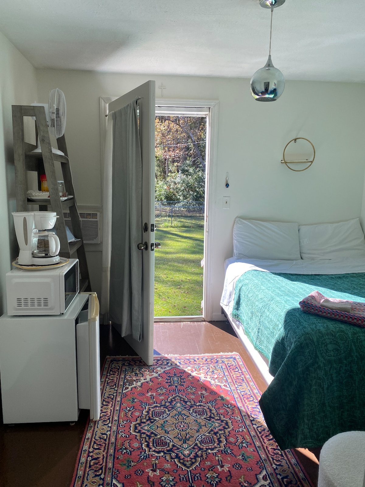 Guests say we are "cozy, quiet, safe, private & convenient to everything". 1 mile to historic district & rivers. Completely remodeled . High, so you'll see & hear the birds sing to you. Private 400 sq ft detached guesthouse with bedroom, bathroom, open living-room/kitchen, & balcony. We welcome all backgrounds, including the LGBTQ community. Discounts for longer stays. This lovely, fully furnished, cozy guest house is perfect for per diem professionals who want a home away from home:)