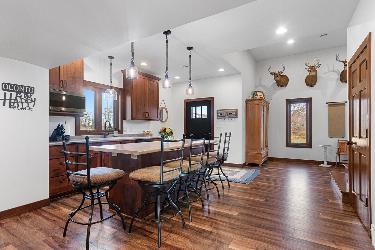 Se stai cercando una vacanza di lusso che non dimenticherai mai, The Lodge non ti deluderà! Situato sulla penisola tra Sand Bay e Riley's Bay nella contea di Door. Il Lodge è abbastanza appartato per garantire privacy, ma abbastanza vicino a tutto ciò che la contea di Door ha da offrire. Arredamento rustico moderno e tutti i comfort di casa: non vorrai più andartene! Posti letto per 12 persone con un'enorme area bar/sala giochi: c'è spazio per tutto il gruppo! Prenota subito il tuo soggiorno e preparati a creare ricordi!
