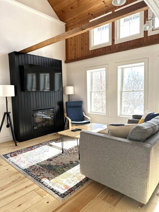 Arredamento "Up North" con servizi moderni. Graziosa baita con tetto spiovente immersa tra pini rossi e bianchi secolari. Spazio esterno per correre e giocare o rilassarsi vicino al fuoco o al camino all'interno. Barbecue disponibile. Porta la tua carbonella. Soggiorno con TV, zona pranzo, cucina e dispensa, bagno e camera da letto con letto matrimoniale al piano principale. Il "loft" al piano superiore dispone di 2 camere da letto, 1 con 2 letti singoli, e l'altro spazio con un letto matrimoniale e una zona lettura che si apre sul balcone privato.