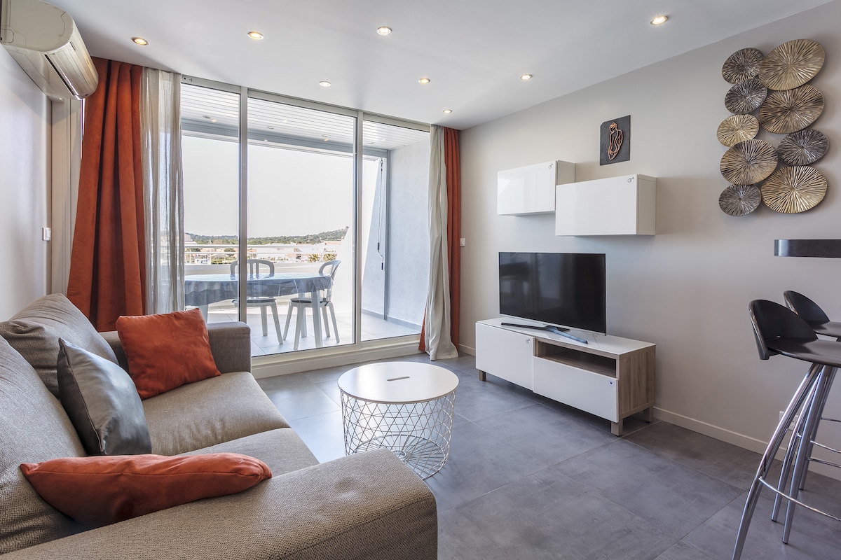 PORT Right Bank Questo appartamento con 2 camere da letto di 73 m2 ti accoglie per soggiorni tranquilli in una nuova residenza di lusso, arredata con gusto. Vista sul porto di Marseillan e sulla laguna di Thau e sulle fattorie di ostriche dalla prima spaziosa loggia. La seconda loggia si affaccia sul giardino interno della residenza. Ideale per 2/3 persone (2 letti 180x200 e 120x190 ). 2 posti auto in un seminterrato sicuro. Per un soggiorno ancora più piacevole potrai usufruire dei servizi di un concierge 7 giorni su 7.