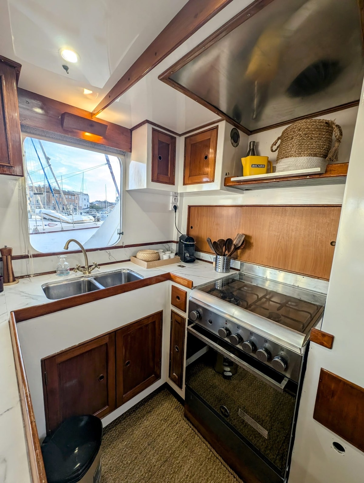 Notte insolita su barca in legno di 17m ormeggiata solo a Martigues (13). Rigeneratevi in questo alloggio atipico nel centro della Venezia provenzale e del suo centro città. La barca è spaziosa e vi permette di mangiare sia all'interno che all'esterno. Dispone di un ampio soggiorno con tavolo che può ospitare 8 persone