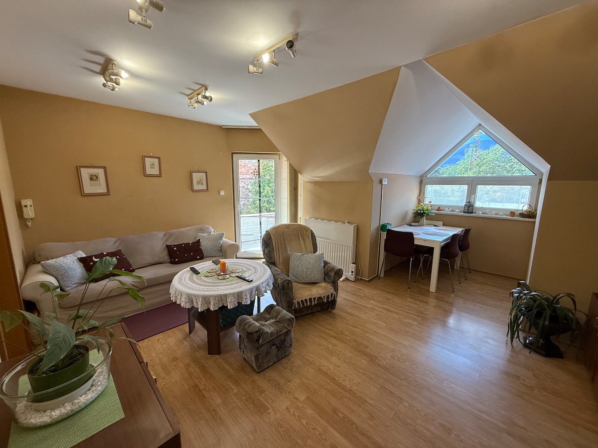 Prenditi una pausa e rilassati in questa oasi di pace. Ti offriamo un appartamento completamente attrezzato in una posizione tranquilla dove potersi rilassare completamente dalle preoccupazioni. Con riscaldamento privato e posto auto, vicino al centro città, il nostro appartamento è il luogo perfetto per il tuo soggiorno. Goditi la privacy di un bagno separato e rilassati sull'ampio balcone soleggiato. L'appartamento è adatto alle famiglie ed è un ottimo punto di partenza per i viaggi nei dintorni.