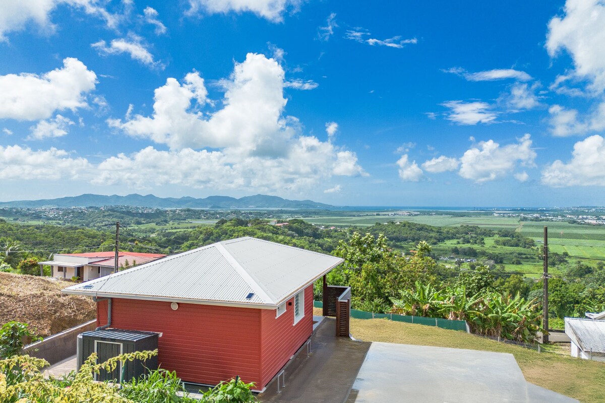 A SAINT-JOSEPH, monolocale tranquillo, accogliente, ventilato e sicuro di 35mq con terrazza di 20mq in un ambiente verde completamente ristrutturato. vista aperta sulla campagna. Parte posteriore della villa Vicino a tutti i servizi: fermata dell'autobus proprio davanti alla villa, borgo a 1 km facilmente raggiungibile a piedi, fiume e luogo turistico di pic-nic a 4,5 km (accesso in auto o a piedi per escursionisti), spiagge a 20 minuti, capitale e centri commerciali a 15 minuti, noleggio auto a 10 minuti, taxi privati facilmente disponibili