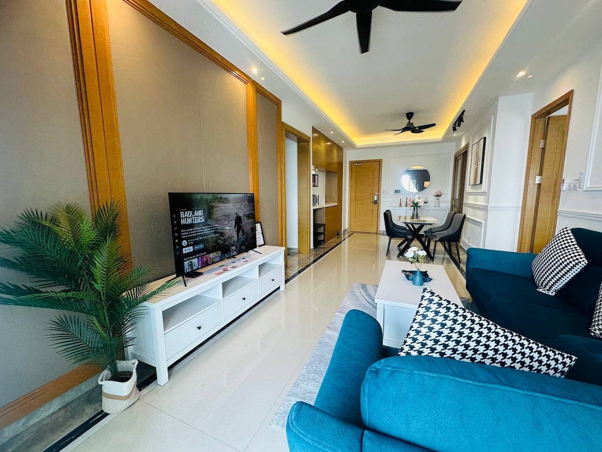 Questa è un'unità spaziosa con 2 camere da letto, perfetta per ospiti fino a 5 persone, con un totale di 1 letto king-size, 1 letto matrimoniale e 1 letto singolo Piano alto con vista elevata. 1. Campo da pallacanestro 1. Palestra 2. Sala funzionale 3. Salone 4. Biblioteca 5. Negozio di manicure 6. Mini teatro 7. Zona barbecue 8. Piscina 9. Sauna 10. Jacuzzi 11. Sala giochi (biliardo, sala PS, freccette e altro) 12. Lavanderia 13. Minimarket - Giardino pensile Gli ospiti non possono fumare in camera; se necessario, fumare sul balcone