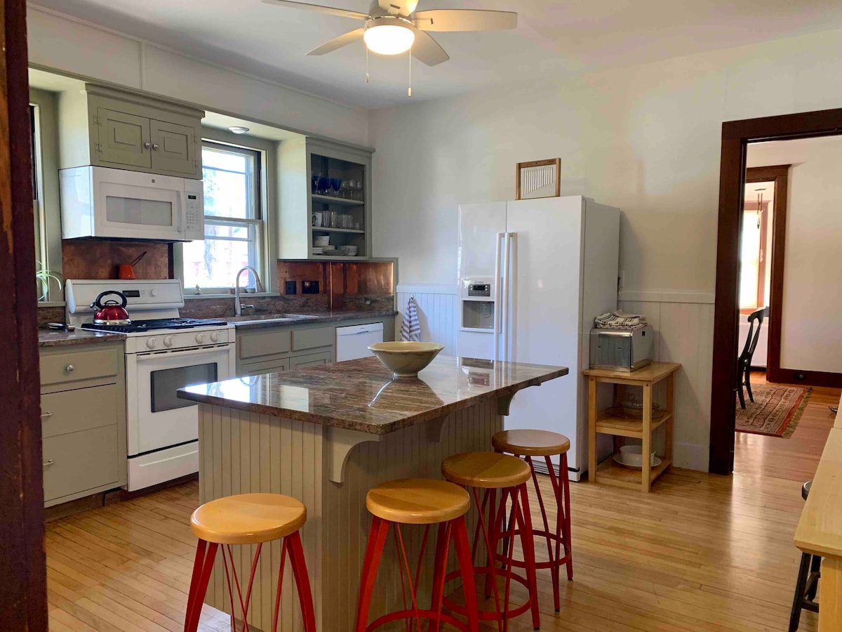 Questo grazioso appartamento in città è accogliente come una casa: soggiorno, sala da pranzo, cucina, 2 camere da letto, 2 bagni, tutto per te e il tuo gruppo. A pochi passi da negozi, ristoranti, teatri, mercati contadini e a breve distanza in auto da offerte artistiche, escursioni, sci e nuoto. Oppure concediti una giornata di benessere in un centro benessere locale. WiFi Spectrum. Ti ricordo che non è presente la TV. Le camere da letto sono piccole, ma c'è un sacco di spazio per rilassarsi, leggere o giocare nello spazioso appartamento o sul portico in comune.
