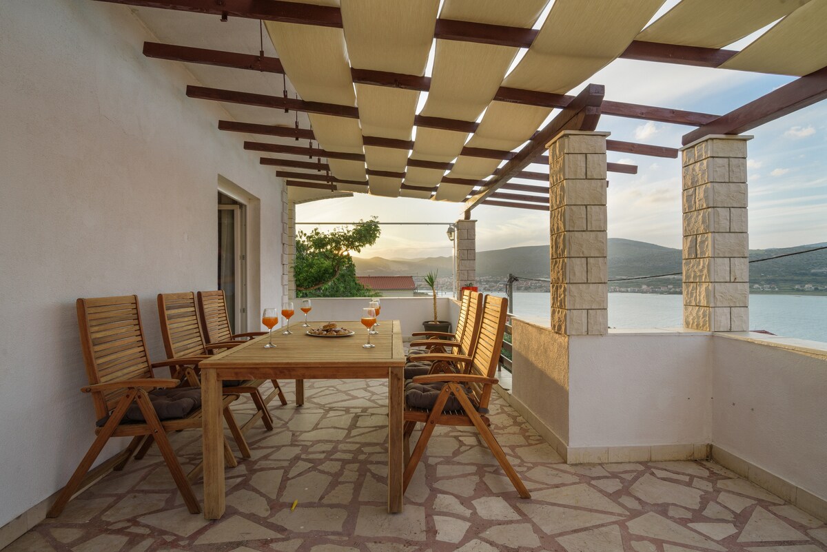Goditi questo appartamento spazioso e soleggiato (50 m²) progettato per farti sentire a casa. La vicinanza alla spiaggia (60 m), la splendida vista sul bellissimo mare blu e sul cielo e tutti i servizi necessari di cui è dotato l'appartamento, consentono all'ospite di trascorrere una vacanza ideale lontano dalla frenetica vita quotidiana. La vicinanza della bellissima città di Traù (4 km) e di Spalato (30 km) è a portata di mano. Tutto questo rende questo posto il luogo ideale per una vacanza piacevole e rilassante