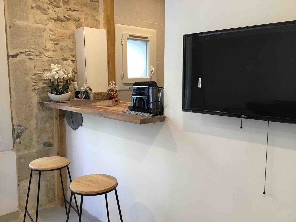 Monolocale indipendente con ingresso privato, angolo cottura e ampio bagno dotato di cabina doccia e lavatrice. Camera spaziosa e luminosa con TV e accesso diretto al giardino per fare colazione al sole. Nel cuore di un villaggio molto tranquillo con tutti i servizi raggiungibili a piedi e a 10-15 minuti dalla commedia in auto, si può anche godere delle spiagge a 20-25 minuti o delle escursioni intorno al Pic Saint Loup a 20 minuti.