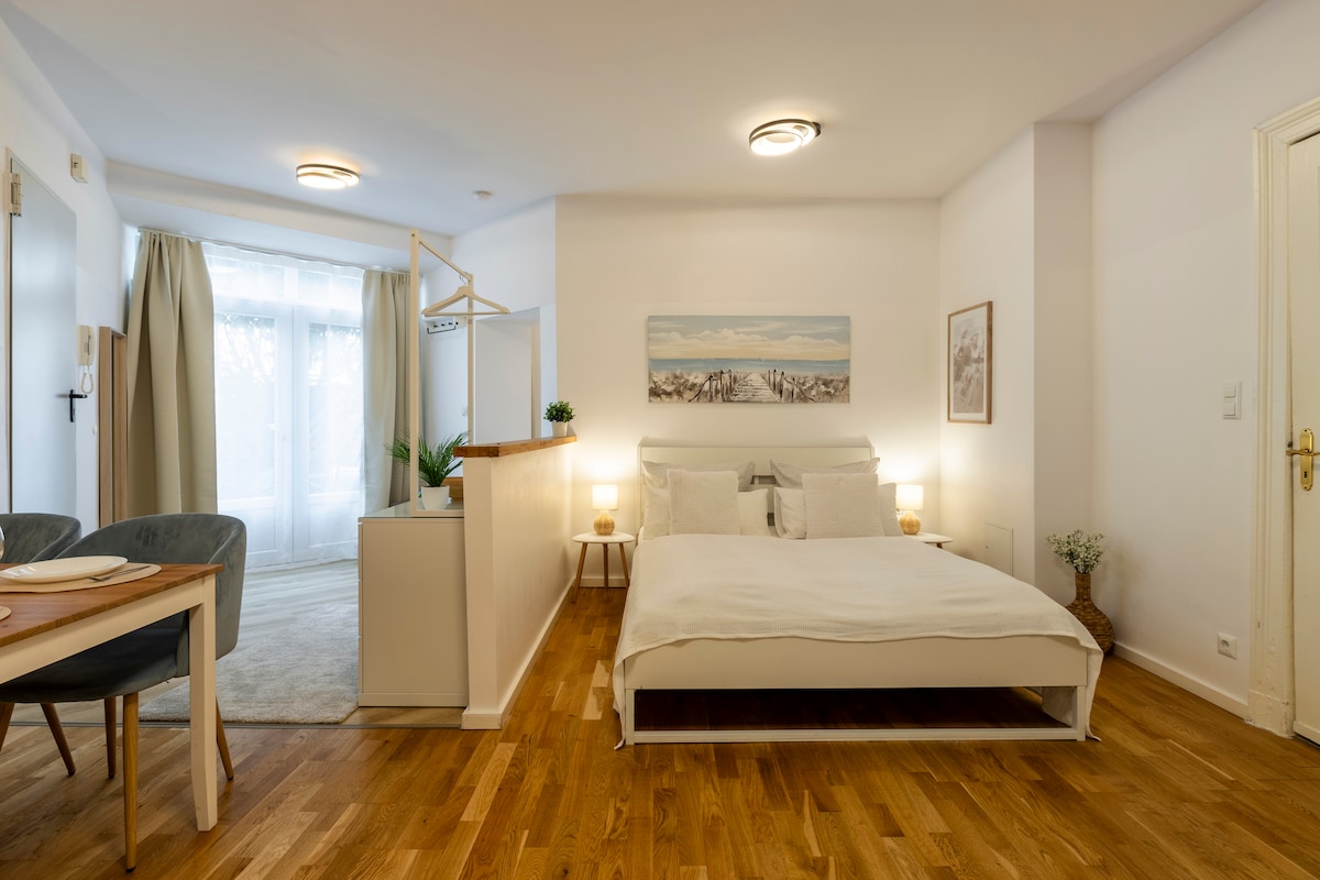 Appartamenti BENSIMON a Berlino Prenzlauer Berg: Nel cuore di Berlino ti aspetta questo moderno monolocale arredato (35 mq) dal tipico fascino berlinese. L'appartamento si trova a Prenzlauer Berg ed è facilmente raggiungibile sia dalla City West che dal quartiere Mitte di Berlino. L'appartamento viene pulito a fondo prima di ogni check-in e poi disinfettato. Il check-in si svolge online ed è senza contatto.