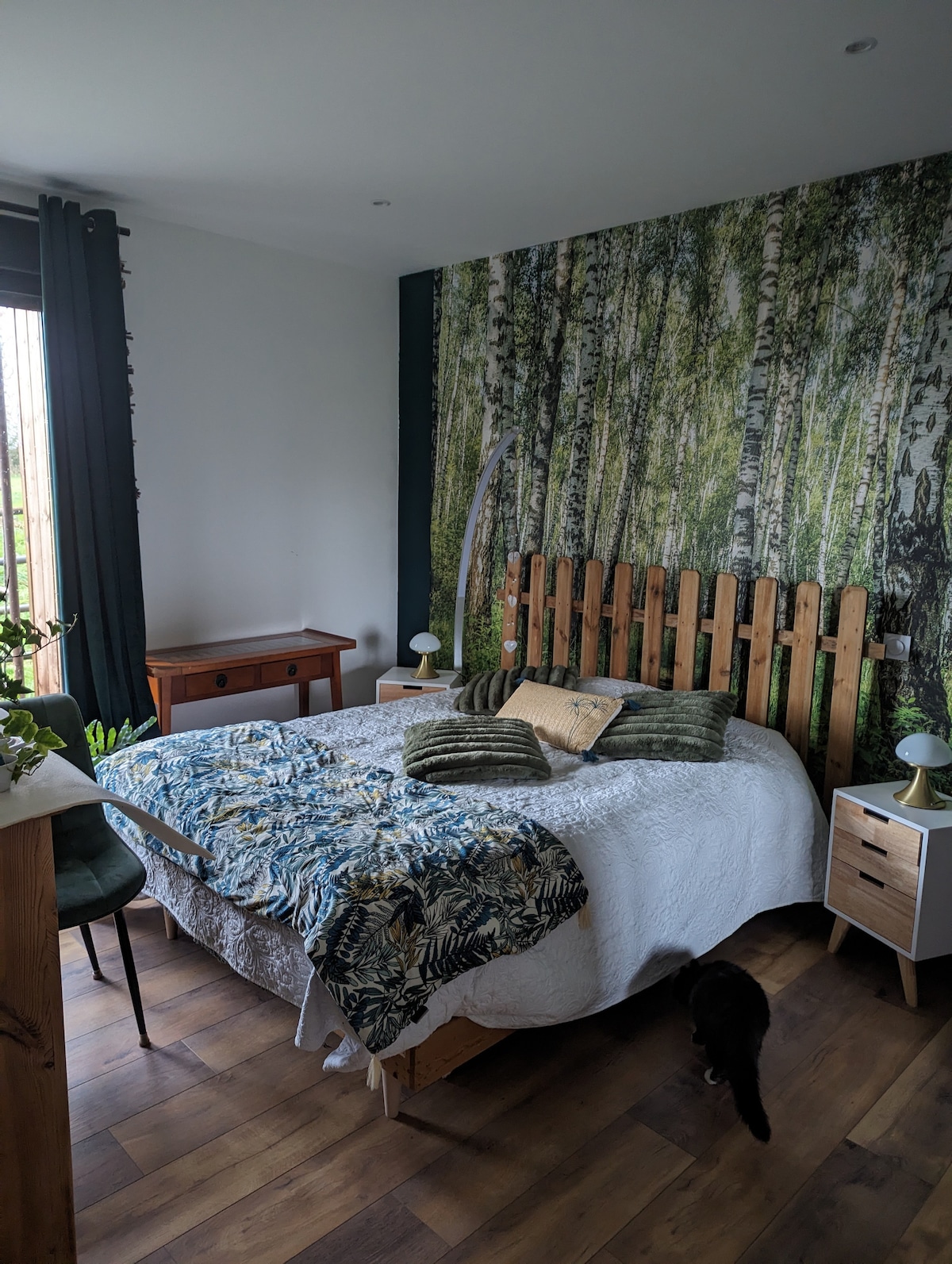 In una graziosa casa rurale della Sarthe, nel cuore di un parco paesaggistico, vi proponiamo una camera privata con letto matrimoniale. Nella stanza adiacente è possibile ospitare fino a due bambini in un letto (da precisare al momento della prenotazione, 10€ a persona). Oltre a un bagno e servizi igienici riservati ai viaggiatori, potrete usufruire dei diversi spazi della casa (soggiorno, cucina...) e del giardino. La prima colazione è inclusa.