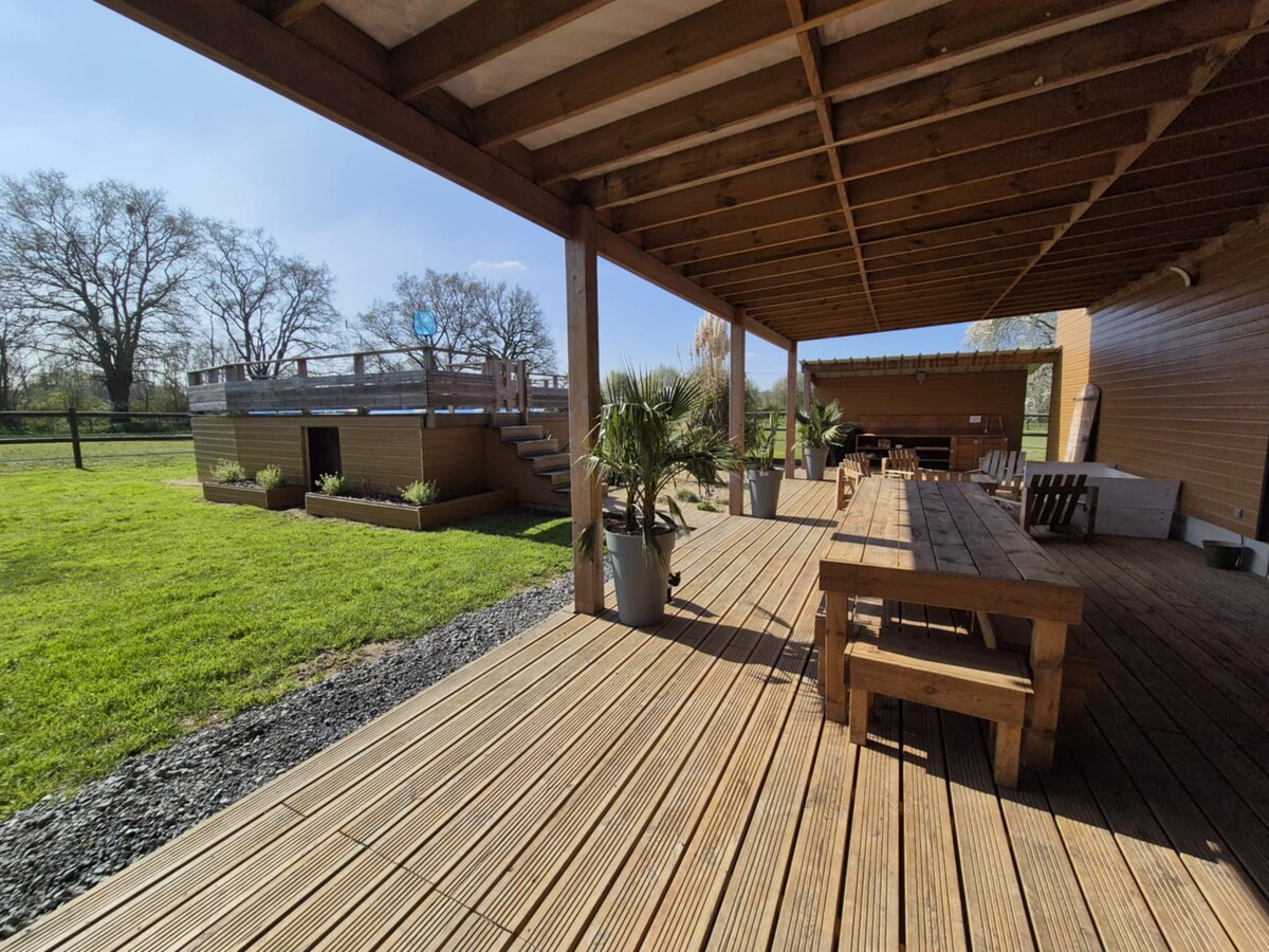 Voglia di grandi spazi aperti? Il cottage les grandes landes (6/8 pers) è quello che fa per voi. Situato nell'Orne tra siti naturali, gastronomia normanna e patrimoni culturali. Nel cuore di una fattoria di famiglia di allevamento di charolais e wagyus. Mini fattoria con maiali vietnamiti, asini, lama, capre... Attrezzature per bambini a disposizione: lettino pieghevole, vasca da bagno, seggiolone, rialzo. Biliardo francese Salotto da giardino con barbecue Campo da bocce piscina interna riscaldata da condividere con il nostro 2° cottage.