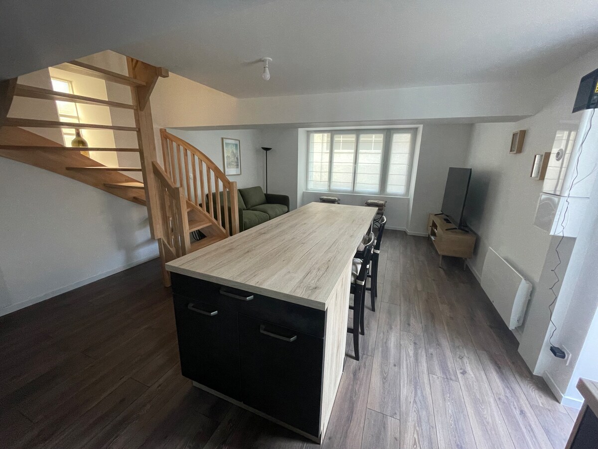 Godetevi in famiglia , con gli amici o i colleghi questo spazioso alloggio che offre bei momenti in prospettiva. (Calcio balilla ) 2 camere da letto più 1 divano letto per ospitare 6 persone. A due passi dalle strade pedonali , e 5 minuti a piedi dalla stazione ferroviaria e 10 minuti a piedi dal castello. Una lavanderia è a vostra disposizione per lasciare biciclette o altro.