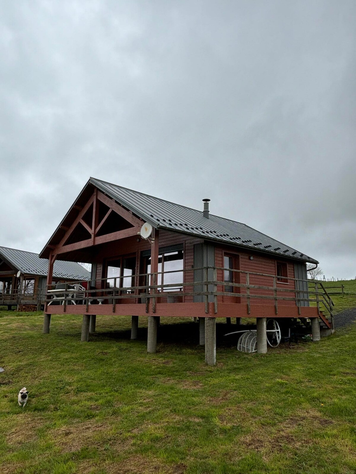 Cabane en fuste nichée au sein des estives de Brion avec une vue imprenable sur les monts du Sancy, au pied du plateau du Cézallier. Profitez d'un séjour paisible en nature, au coin d'un poêle à bois à seulement 25 minutes des pistes de ski de Super-Besse et 1h de Clermont Ferrand. En option : Possibilité d'avoir accès au bain nordique (30€/h), au sauna (40€/h) et repas du soir (25€/personne). Petit déjeuner compris.