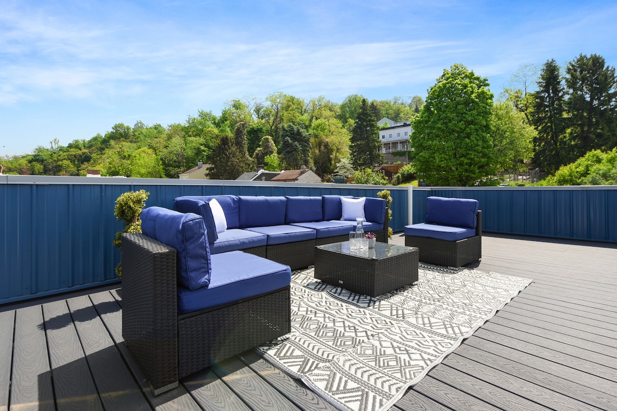 Questa casa ristrutturata unisce un tocco storico al lusso moderno: legno originale, porte a scomparsa e finiture di lusso. Immerso in un quartiere tranquillo a soli 10 minuti dal centro, puoi goderti un parcheggio facile, una terrazza privata con barbecue e un'atmosfera tranquilla dopo le avventure in città. Una casa versatile, è il luogo ideale per famiglie, gruppi, squadre di lavoro e soggiorni prolungati. Ed è un'ottima base se sei in città per le partite dei Pirates o degli Steelers!