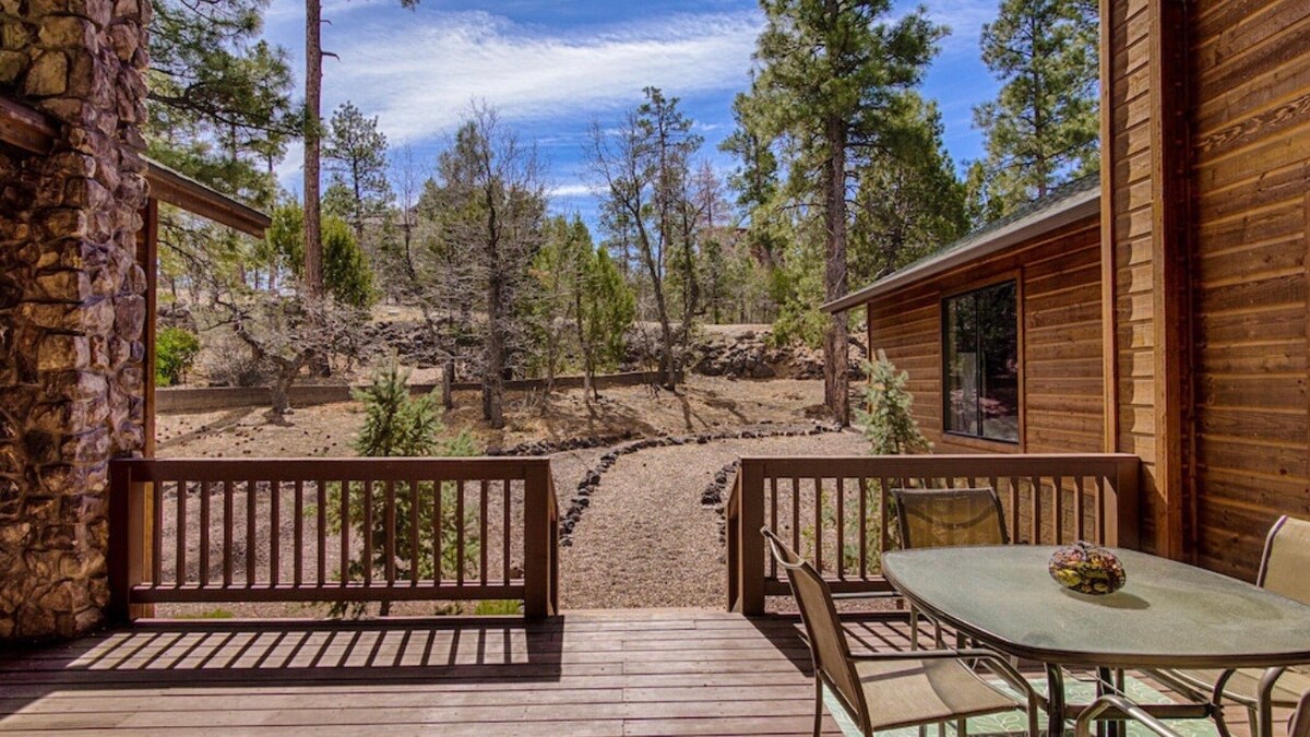Dogs Welcome | Remote Work Friendly | Outdoor Entertainment Space | Torreon Community Amenities with a additional FEE | Bicycles and Golf Cart with Waiver. Come stay at our remodeled Torreon Cabin with an expanded deck & outdoor fireplace and experience a memorable Show Low cabin getaway in the heart of Arizona’s White Mountains within Cardinal Landing Gated neighborhood. This charming 2-bedroom, 2-bath vacation rental cabin is perfectly situated near forest trails and Fool Hollow Lake, making it an ideal home base for outdoor enthusiasts, families, and couples seeking a peaceful mountain escape. Step outside and enjoy immediate access to hiking, biking, fishing, and boating, with scenic pine forests just moments away. During the winter months, take advantage of nearby Sunrise Park Ski Resort and Arizona Snowbowl for skiing, snowboarding, and snow play. In warmer seasons, enjoy cool mountain air, wildlife sightings, and endless opportunities for outdoor adventure. After a full day exploring Show Low and the surrounding White Mountains, relax at the cabin by gathering around the outdoor fireplace or unwinding inside the cozy living spaces designed for comfort and connection. The thoughtfully laid-out interior provides everything you need for short or extended stays, blending rustic charm with modern convenience. Located in a quiet, wooded setting yet close to local dining, shops, and attractions, this Show Low vacation rental offers the perfect balance of privacy and accessibility. Whether you’re planning a weekend escape, a family vacation, or a seasonal mountain retreat, this cabin delivers year-round comfort, adventure, and unforgettable memories. The Property TPT-21384743 | STR-00186 Sleeping Arrangements Bedroom 1: King bed Bedroom 2: Queen bed, twin bench pull out Community Amenities Listed Below (Passthrough Torreon Guest Fees) 1.Recreation Work Out Center 2.Kid-friendly recreation areas, fishing, and basketball court 3. Tennis & Pickleball Torreon Onsite bar, restaurant, golf shop, and hiking trails Open to All Guests Outdoor Living Spacious deck with comfortable seating Gas grill with infrared cooking technology Outdoor wood-burning fireplace - Gas Starter Smart TVs with Apple TV Indoors and Outdoors Golf Cart & Bicycle Use - With Liability Waiver Indoor Living Smart TVs with YouTube Live TV on Apple TV Gas fireplace, DVD player Dedicated workspace with Apple MAC Mini, Apple monitor, and printer Kitchen Fully equipped with major appliances, including dishwasher Drip coffee maker and Keurig with starter pods Cooking essentials, dishware, and flatware General Free WiFi Air conditioning Linens, towels, and complimentary toiletries Smart thermostat and Smart Locks Self Checkin With Entry Codes Computer station, radio, and alarm clock Parking Garage for 1 vehicle Remote Garage Access with iPhone or Android App Driveway space for 2 vehicles Additional Information Torreon golf course is not available for guest use Community clubhouse is open from Memorial Day weekend to Labor Day weekend Community amenities are available for an additional fee: $275 for the primary guest, $75 per additional guest (up to four guests). Access is limited to two times per month, coordinated with the guest contact. Pet-friendly with a $250 fee for up to two dogs No smoking, parties, or events permitted Photo ID may be required at check-in
