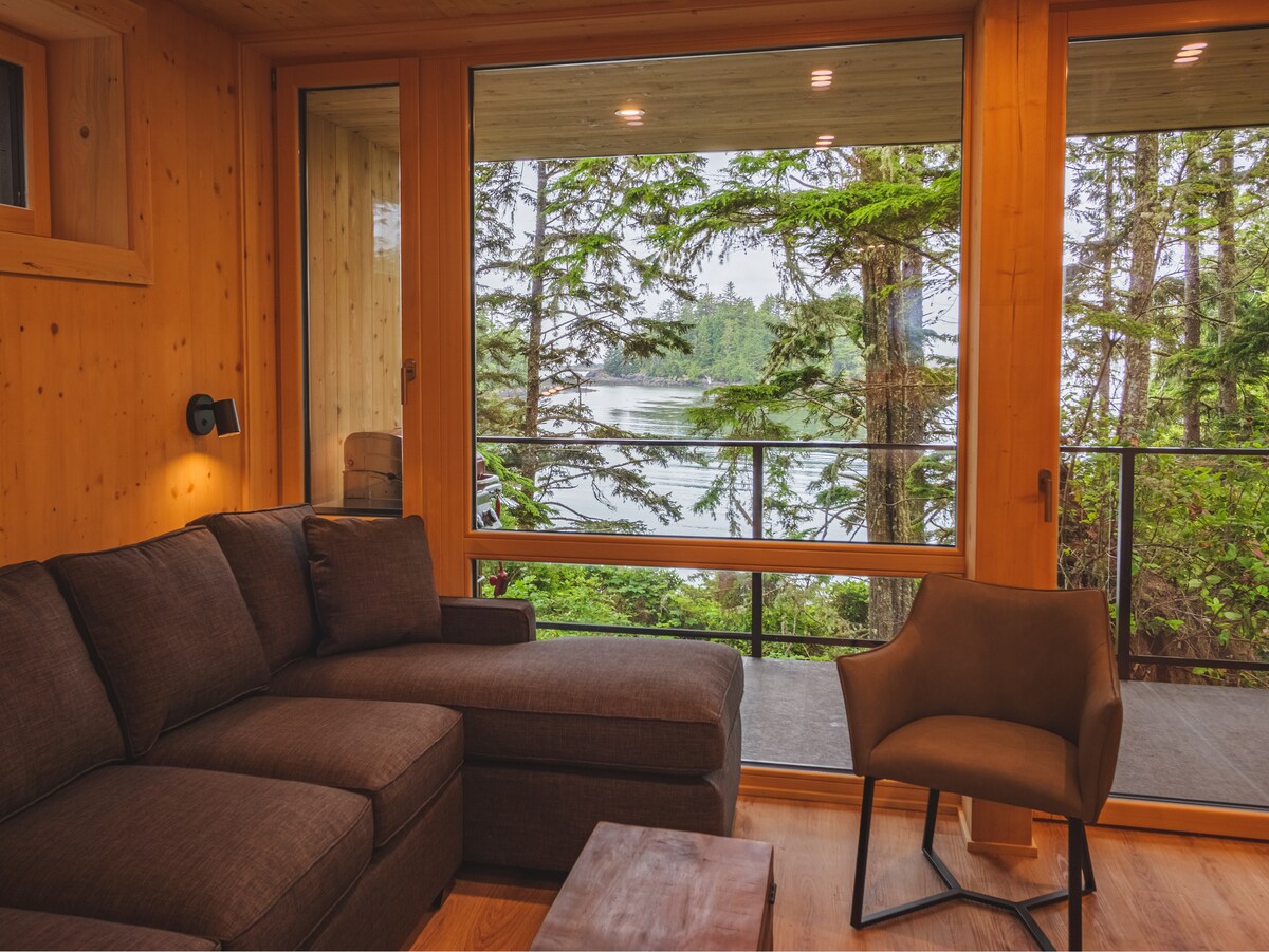 Questa bellissima cabina progettata su misura si trova vicino alle principali spiagge per il surf di Tofino. Cucina gourmet fornita di tutte le basi per cucinare. I servizi della suite includono riscaldamento radiante a pavimento, pavimenti in cemento, due camere da letto, bagno completo, lavatrice/asciugatrice, barbecue, patio con ombrellone, TV a schermo piatto, televisione via cavo, internet wireless ad alta velocità camino elettrico e doccia surf all'aperto. I proprietari vivono in loco in una residenza separata. Spiacenti, nessun animale domestico. Licenza#20180173