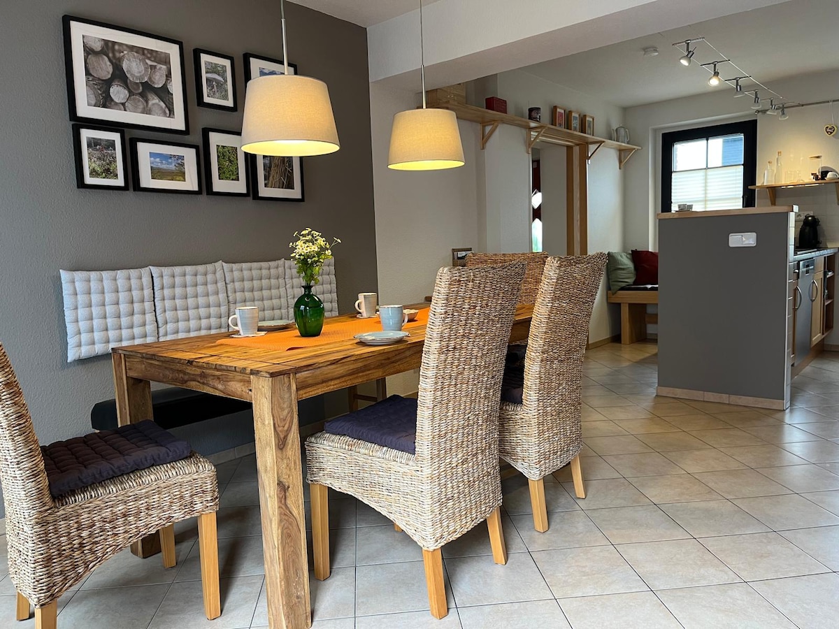 Die helle und stilvoll eingerichtete Ferienwohnung bietet alle Annehmlichkeiten für einen schönen und erholsamen Urlaub. Die ca. 80m2 große Wohnung ist für 2 bis 6 Personen ausgelegt und verfügt über einen großen Wohn- und Eßbereich, einen schönen Balkon, einen TV, ein Schlafzimmer mit Doppelbett (180x200cm), ein zweites Schlafzimmer mit 2 Einzelbetten sowie eine komplett ausgestattete Küche inkl. Spülmaschine. Bei 5/6er Belegung mit Schlafcouch (160x200cm) im Wohnzimmer.