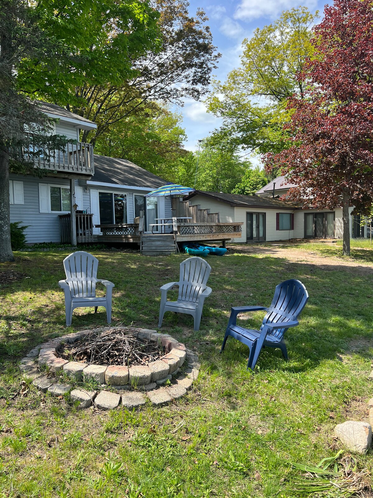 Welcome to the Latitude Adjustment Cottage! Wide open 3 beds one bath nestled in a rustic, cozy, knotty pine ranch with views of the Tri-Lakes. Private outdoor fire pit and patio in the back is ready for all the s'mores you can eat. Front deck offers plenty of sunbathing and a gas grill, and a quick step down, an area ready for any yard game. 10 min from St Ives Golf Course. Lake access across Round Lake Dr w/ a space to launch the kayaks. This private get away is ready for complete relaxation!