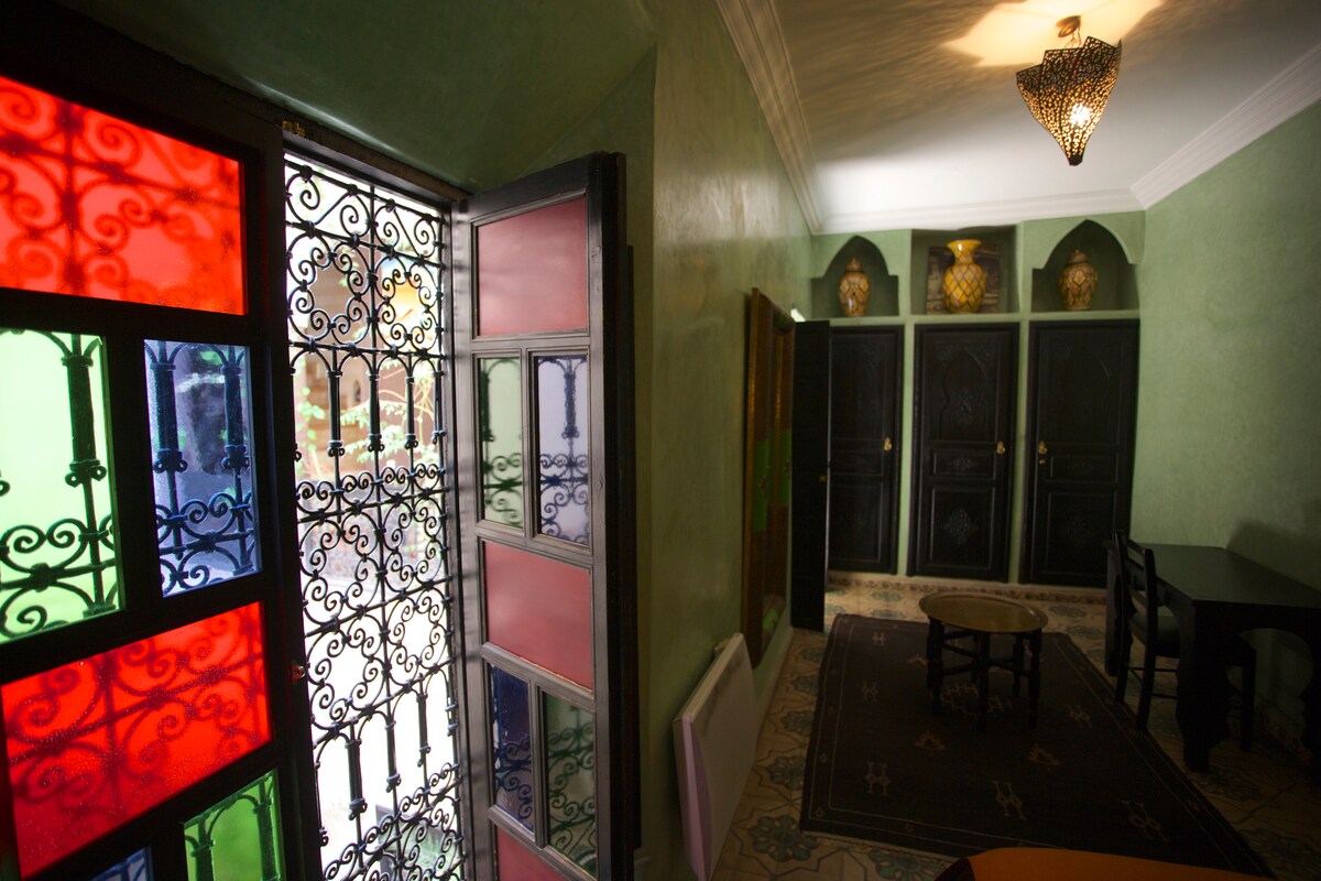 Notre Riad se situe dans la médina de Marrakech avec ses 5 chambres avec douche et wc rien que pour vous Vous serez seul dans le riad Pour un séjour inoubliable entre vous Vous l apprécierez pour sa sécurité et surtout surtout pour youcef qui est d une gentillesse et une disponibilité exceptionnelle depuis 15 ans ils rend votre séjour magnifique regarder les avis des clients 100% satisfaits parfait pour les couples, les voyageurs d'affaire et surtout les familles avec enfants merci 🙏