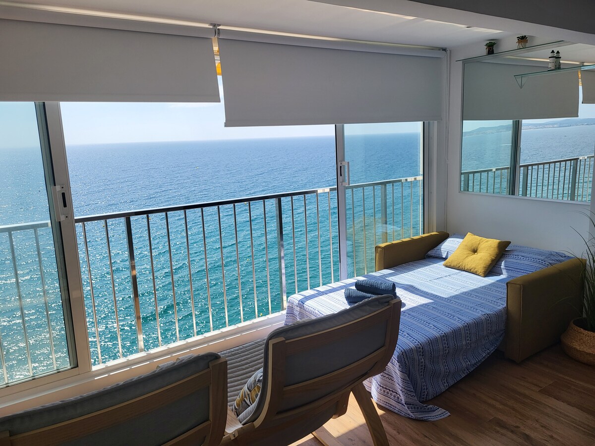 Loft di 40 mq con spettacolare vista frontale sulla spiaggia, situato al centro del lungomare, al 14° piano dell'edificio ElyPalace. Dispone di un letto matrimoniale e un divano letto. Vicino a negozi, ristoranti e parcheggio comunale gratuito. Possibilità di parcheggio nello stesso edificio a pagamento, previa disponibilità. Aria condizionata e pompa calore. Wi-Fi gratuito e Smart TV Samsung da 50” Attrezzati per farti sentire come a casa.