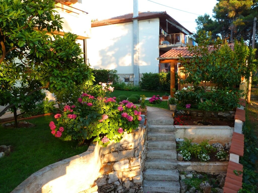 L'apartamento si trova al primo piano.Ha tutti gli utensili per un aloggio comfortabile,una bella terazza con la vista sul grande giardino privato e il Quarnero.Il parcheggio e' privato e si trova sempre in ombra.