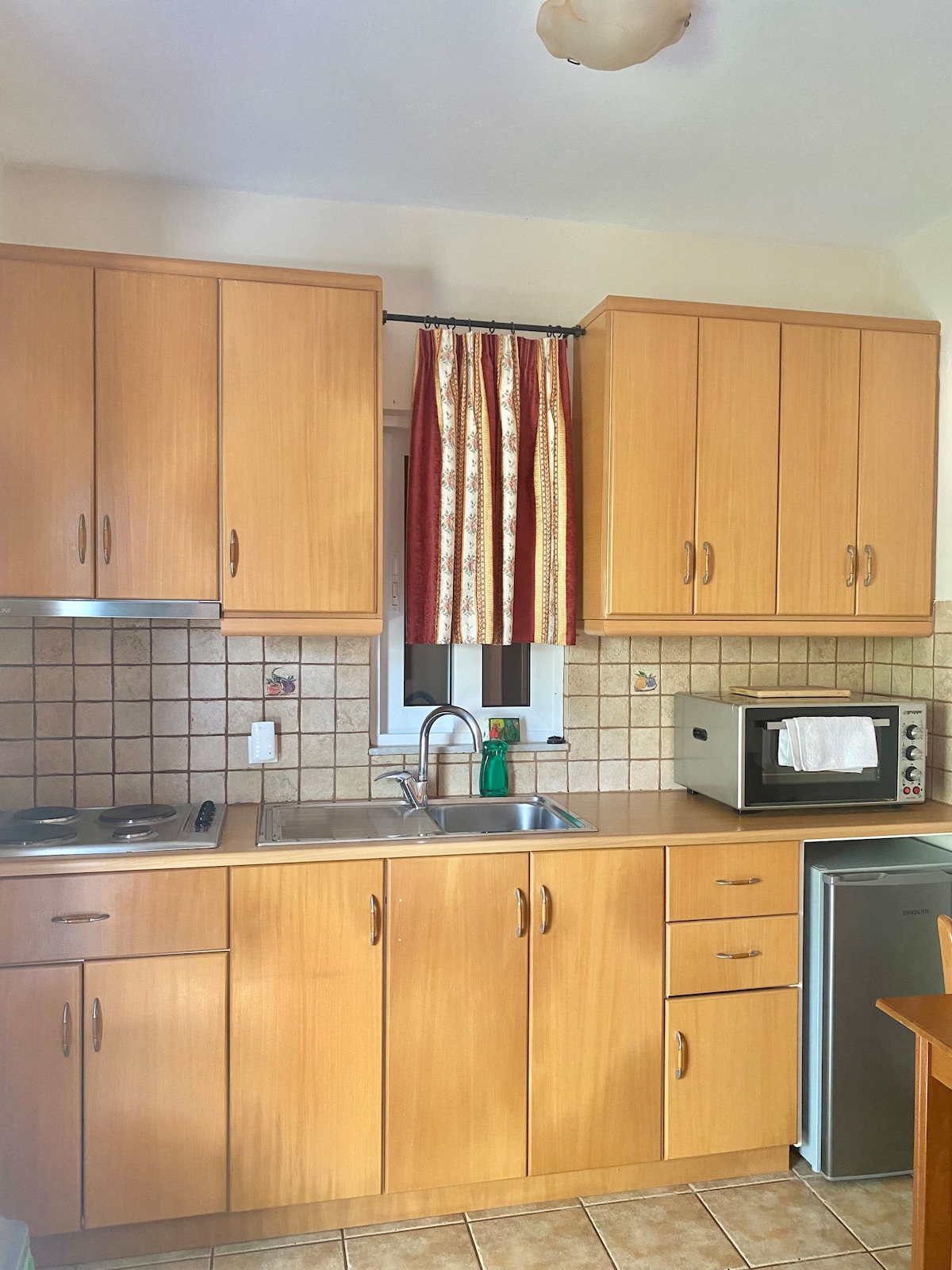 Villa Gyri is a brand new construction of 50sqm and it is comprised of 1 bedroom, 1 bathroom and an open plan kitchen/dining/living area, leading directly to the outdoor area where our guests will find a swimming pool, an outdoor shower, a barbeque area, an outdoor dining table, and sunbeds for lounging. This villa accommodates 2 adults and also 2 children as there is a sofa which can convert into a bed which sleeps 2. In the living room there is a 43' smart TV.