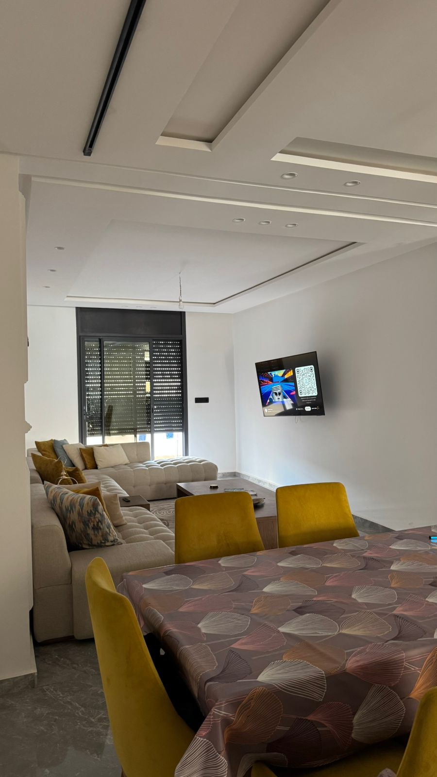 Bright 120m² apartment with 3 façades and all-day sunlight. Just 5 min from the beach, 10 min from Kenitra, and 3 min from Marjane. Enjoy a cozy living room, private bathroom, dedicated workspace, and fast Wi-Fi — perfect for families, couples, or remote workers. Near cafés, markets, and the mall, with easy access to Rabat (40 min).