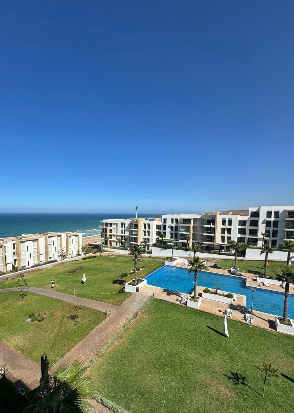 Appartement familial en front de mer – Prestigia Plage des Nations À 20 minutes de l’aéroport de Rabat-Salé. Le logement : -1 suite parentale avec salle de bain privée et balcon privé en front de mer -1 chambre avec deux lits simples -Salon spacieux, 1 personne peut y dormir si nécessaire -salle à manger -Cuisine équipée -Draps, serviettes, produits de base inclus -Wi-Fi / Télévision + IPTV -Place de parking privée -Piscine (fermé hors été), accès plage, aire de jeux Appartement Non-fumeur