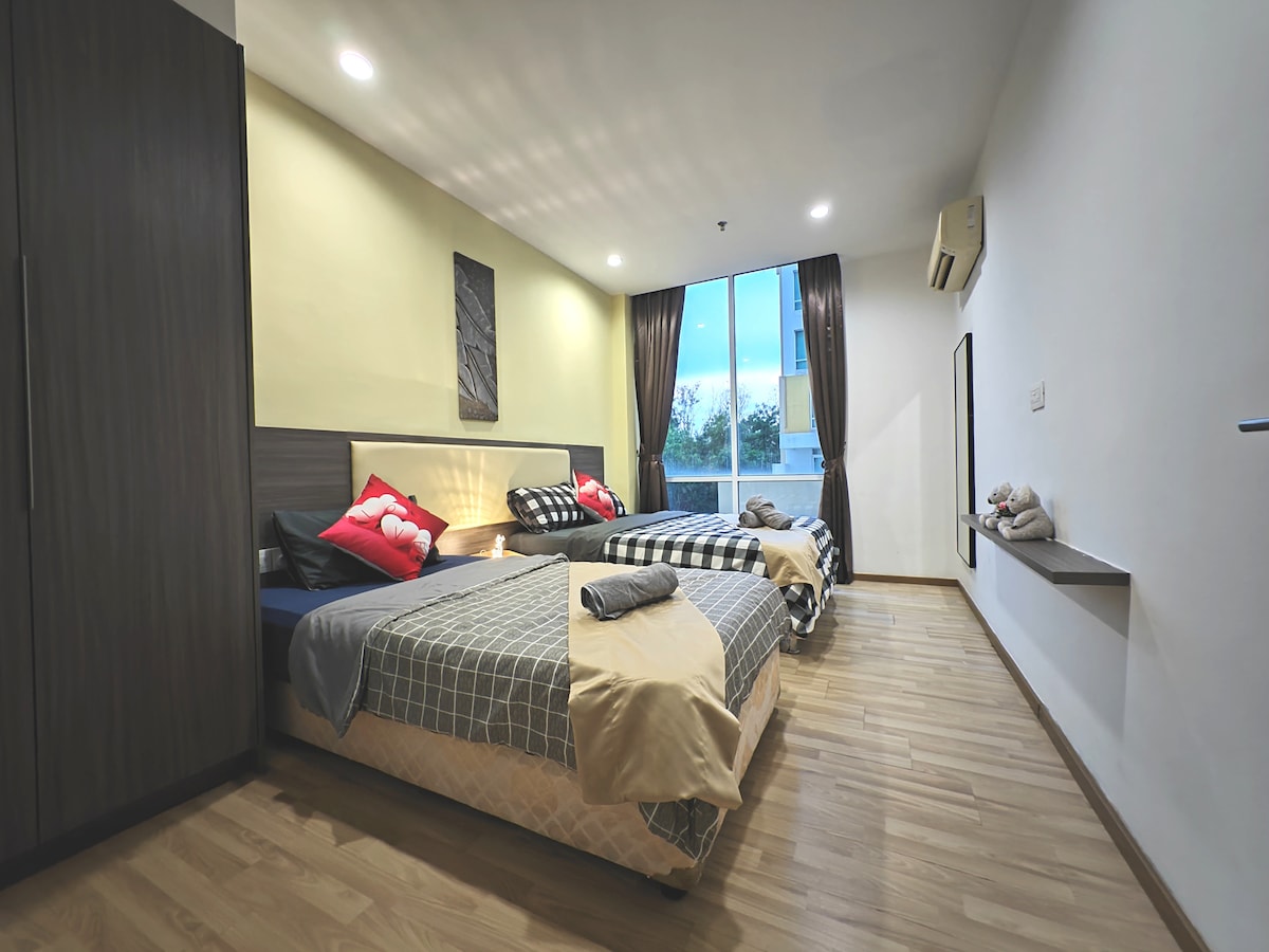Benvenuti a LineFriends Homestay, uno spazio divertente e accogliente per famiglie proprio nel cuore della zona storica di Melaka! 🏙️ Perfetta per famiglie o gruppi, la nostra unità con 3 camere da letto si trova presso l'Atlantis Residence con strutture a 5 stelle in stile resort, tra cui una piscina, una palestra e altro ancora.