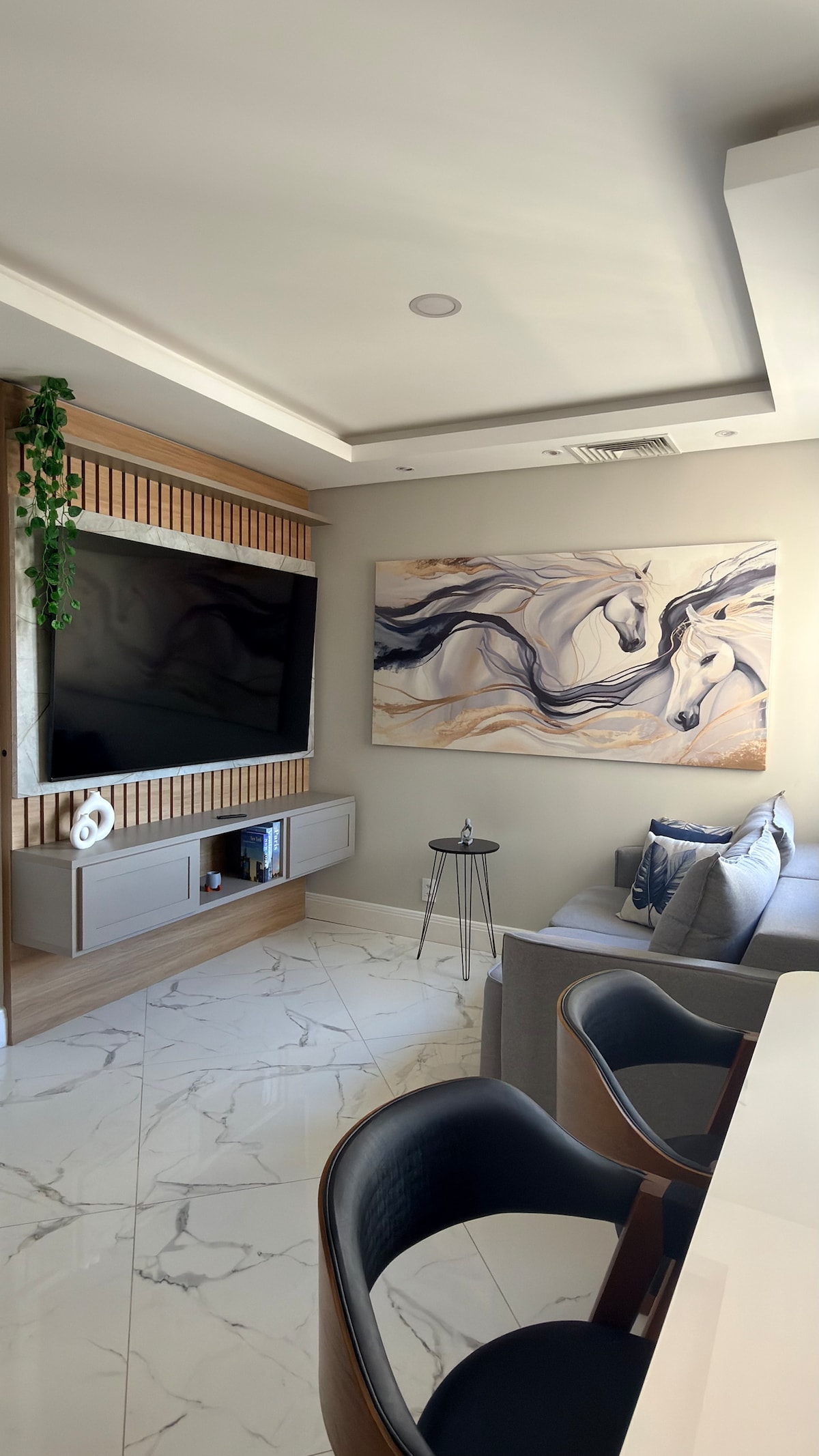 We understand that life is full of comings and goings, and we believe that the concept of home doesn't have to be fixed or definitive. The important thing is to provide a space where you can feel comfortable and free to live your way. Our studios have been designed with attention to detail, so that you can make this your home. The 44m² studio has a QUEEN bed, a SINGLE sofa bed, a 43” Smart TV and AC SPLIT.