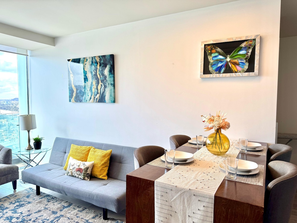 Bellissimo appartamento in edificio con sicurezza 24 ore su 24, 7 giorni su 7, con tutti i comfort • Con opzione di illuminazione calda e ambrata per un soggiorno più accogliente • Piscina riscaldata, Jacuzzi, Palestra, Mezzanino, Wifi, A/C, Lavasciuga, Microonde, Balcone, ecc. • Negozi al piano terra: Minimarket, caffè, birreria artigianale, tintoria, chilaquiles, poke, insalate, hamburger, tintoria, tra gli altri. Ottima zona per camminare o correre 🏃🏻♂️