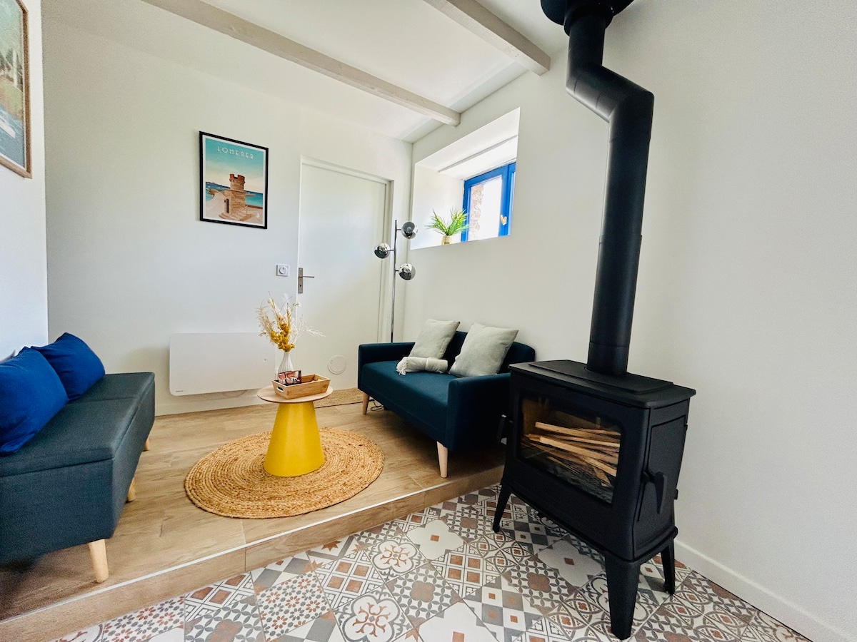Dependance di longère del XIX secolo appena ristrutturata e trasformata in casa indipendente. Uno stile unico nel cuore di uno scrigno di verde ,perfetto per un rifugio immerso nella natura . Piccolo giardino privato e accesso comune ampio giardino con animali della fattoria e orto. Il tutto situato in un borgo tranquillo. A 5 minuti da negozi di alimentari , ristoranti e creperie A 25 minuti dalle spiagge in auto. Circuiti escursionistici nei dintorni . Zoo e golf nel comune vicino . A 25 minuti da Lorient.