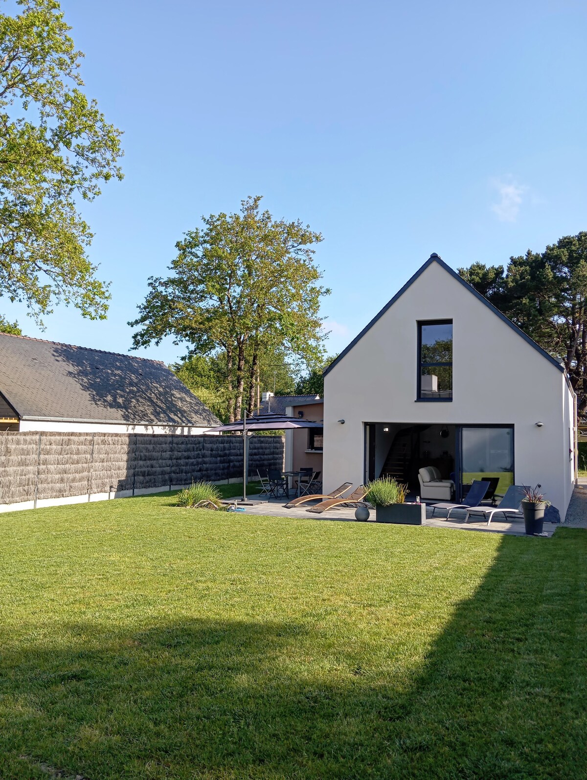 Piccola casa vacanze con molto carattere costruita nel 2014 su un piacevole terreno alberato a 300 metri dalla spiaggia e a 400 metri dal borgo con tutti i servizi. Funzionale e facile da vivere nelle belle giornate, confortevole e accogliente nella bassa stagione, l'abbiamo arredata nello spirito di una località balneare degli anni '60. Un luogo ideale per rigenerarsi ma anche per visitare la Presqu'île Guérandaise, la Brière, il Golfo del Morbihan o Belle-Ile-en-Mer (da La Turballe).