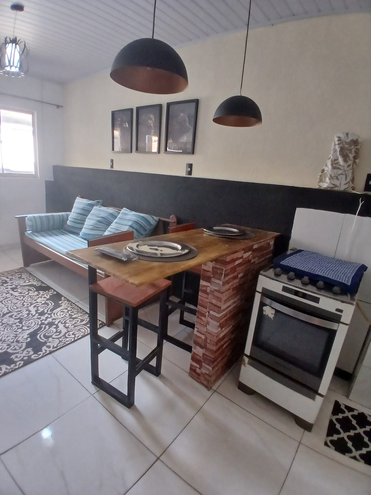 O espaço é um apartamento tipo casa, com estilo rústico, compacto mas bastante confortável e funcional. É arejado, bem iluminado, com um pátio amplo privativo, onde é possível desfrutar do sossego de uma ampla área externa, com uma vista deslumbrante que inclui o Pão de Açúcar e Cristo Redentor. O pátio é um espaço privilegiado para observar a paisagem cultural urbana do Rio de Janeiro e sua forte relação entre homem e natureza.