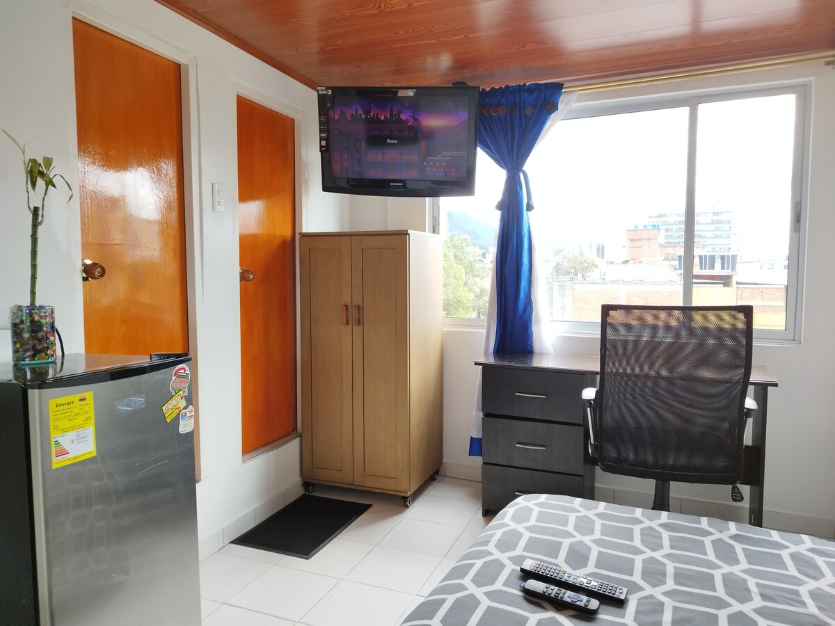 SUITE TOTALMENTE INDIPENDENTE, accogliente e con bagno privato. Ha un ingresso o accesso totalmente indipendente. Ideale per una persona singola. Situata in una zona TRANQUILLA e SICURA di Bogotá, dove si trovano supermercati, mezzi di trasporto, farmacie, lavanderie, banche e negozi a pochi metri di distanza. Vicino alla zona T, Andino, cliniche e ospedali (15 minuti a piedi), TV via cavo e la migliore connessione Internet con IP dedicato (700 megabyte) per lavoro, videochiamate e altro.