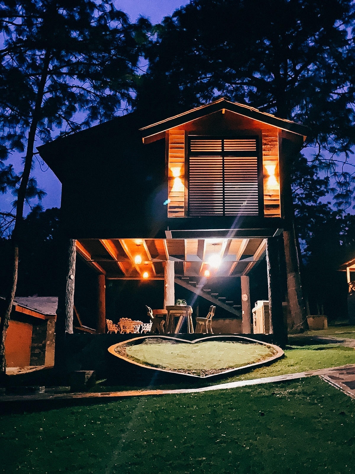Tu refugio entre raíces y calma. Ubicada entre árboles milenarios y envuelta por neblina, esta cabaña ofrece una pausa íntima lejos del ruido. Su arquitectura rústica, iluminación cálida y atmósfera contemplativa la convierten en el lugar perfecto para leer junto al fuego, escribir desde la introspección o simplemente escuchar al bosque respirar.