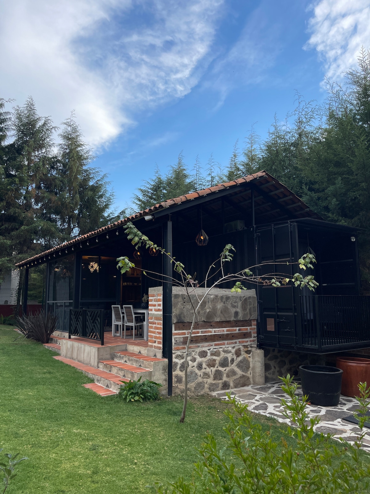 Departamento hecho con un contenedor marítimo el cual fue acondicionado con todo lo necesario para pasar una estancia increíble, teniendo una vista al jardín excepcional. Cuenta con aire acondicionado, cava de vinos y todo lo necesario, despertarás y podrás admirar el nogal que se encuentra Justo frente a la ventana de la cama lo cual será una experiencia muy grata y relajante.