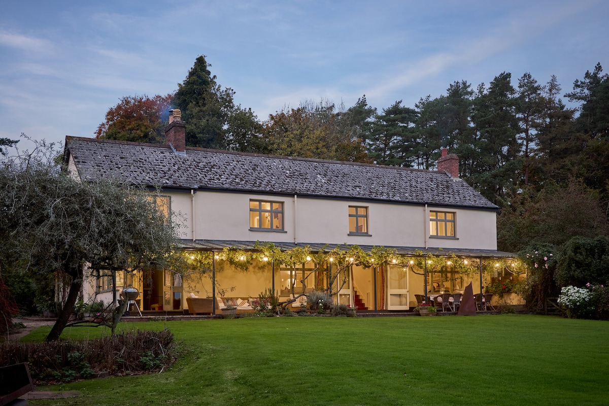 Converted barn in 100 acres of land. A home from home crammed with books, games and toys. Easily accommodates at least 10 people comfortably. The garden, pond, woods and parking areas are all exclusively yours for the stay. We live up the lane from the barn. So you have privacy. We have chickens, ducks, Sheep and pigs on the farm. Just five minutes drive from J28 of the M5. 20mins from Exeter centre. Not near any good beaches so don't choose us for a beach holiday. There is no spa.