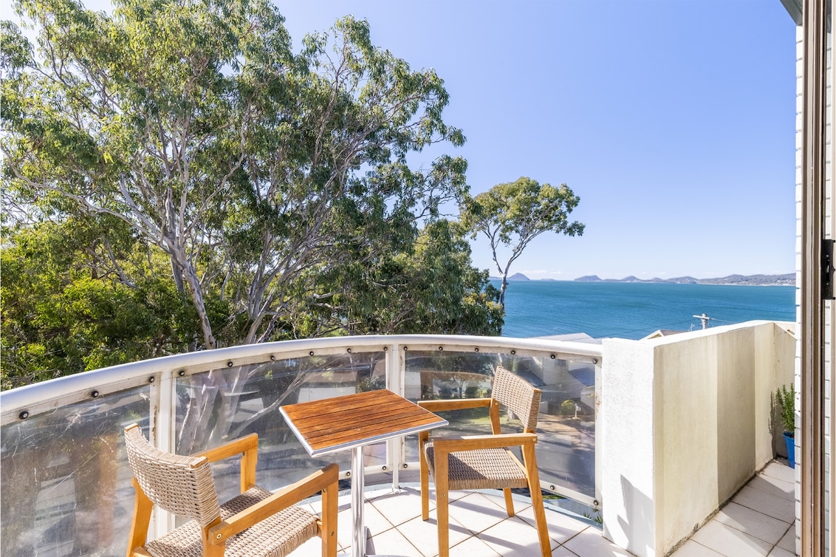 Goditi spettacolari albe e viste sul mare, avvista koala, delfini e uccelli da questo spazioso appartamento all'altezza degli alberi, arredato con gusto e dotato di 2 camere da letto (letti fatti) e 2 BAGNI. Circondato da spiagge quasi deserte, con piscina in loco. A pochi passi dal porto turistico, dove potrai ammirare splendidi tramonti e trovare caffetterie, ristoranti, noleggio barche e campi da tennis. Raggiungi a piedi il Bannisters/Cheeky Dog Pub e il Bowling Club con un bus di cortesia. Gli ASCIUGAMANI NON sono inclusi, ma possono essere forniti a un costo aggiuntivo, se necessario: informarsi prima dell'arrivo.