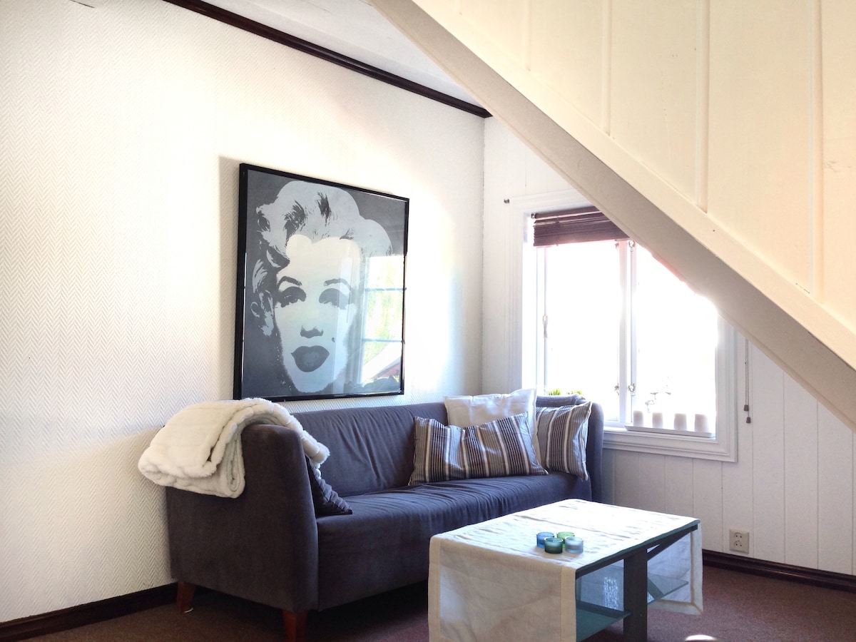 OBS: på søndage har vi check ind efter 18.00. Lejligheden har egen indgang, køkken/stue, stort baderum og soverum. I stuen findes der en sovesofa. Køkkenet har opvaskemaskine og er udstyret med grundlæggende køkkenredskaber. Der findes puder og dyner, mens sengetøj og håndklæder lejes mod ekstra gebyr. Egner sig for to single studenter eller en lille familie. Det er lidt lydt i huset så man skal være forberedt på det. Men vi er ganske så fredelige, især i hverdagene. Vi har en kat.