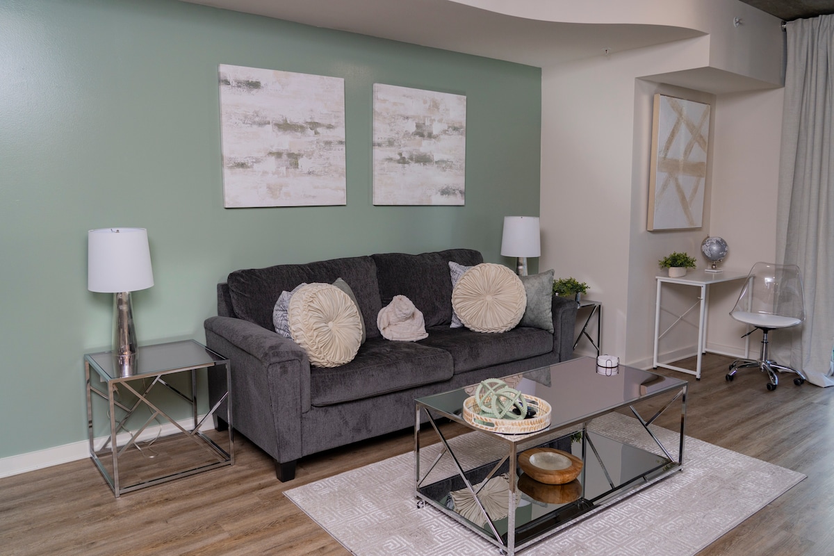 ***PARCHEGGIO GRATUITO*** Goditi un'esperienza all'insegna dello stile in questo attico in centro! Situato nel cuore di Midtown, vicino a molti ristoranti, centri commerciali, negozi di alimentari, stazioni di servizio e molto altro ancora!! Se sei diretto da queste parti e cerchi un alloggio che offra comfort, praticità e stile cittadino, troverai tutto ciò che stai cercando! Goditi un massaggio completo di 1 ora GRATUITO DOPO aver prenotato 5 notti!! È un ottimo modo per iniziare le vacanze!