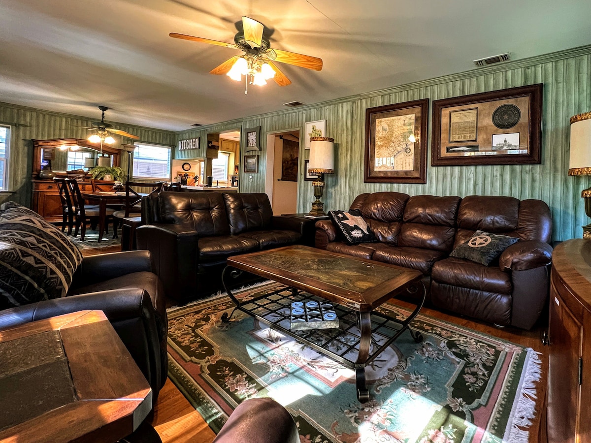 Questa bellissima casa a tema texano si trova nel cuore di San Angelo, in Texas, nello storico quartiere di Santa Rita. Vanta pavimenti originali in legno massello, mobili antichi e vecchi alberi di noci pecan. Vicino al centro, al Concho Riverwalk, ai Water Lily Gardens, all'ospedale Shannon, all'università ASU, a negozi, ristoranti e parchi. Risparmia il 10% sui soggiorni di almeno 7 notti. Risparmia il 5% prenotando con almeno 30 giorni di anticipo. Wifi gratuito ad alta velocità disponibile. Barbecue gratuito. Ampio parcheggio gratuito in loco.