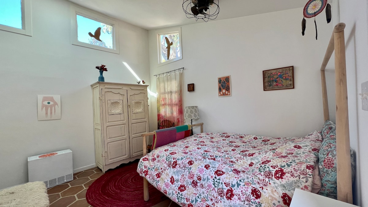 Ti diamo il benvenuto in questo spazio unico e rilassante. Il fascino del vecchio mondo incontra lo stile boho in questo meraviglioso monolocale sopra il garage, con ingresso indipendente. Uno spazio spazioso ma accogliente con soffitti a volta lo rende davvero speciale. La stufa a legna (non operativa) aggiunge un elemento e un'atmosfera unici alla stanza. L'angolo cottura è ideale per il caffè del mattino o per riscaldare cibo. La terrazza panoramica è un gioiello e un incantevole luogo privato. Esci e ti troverai praticamente già sulle colline. Scala interna fino allo studio