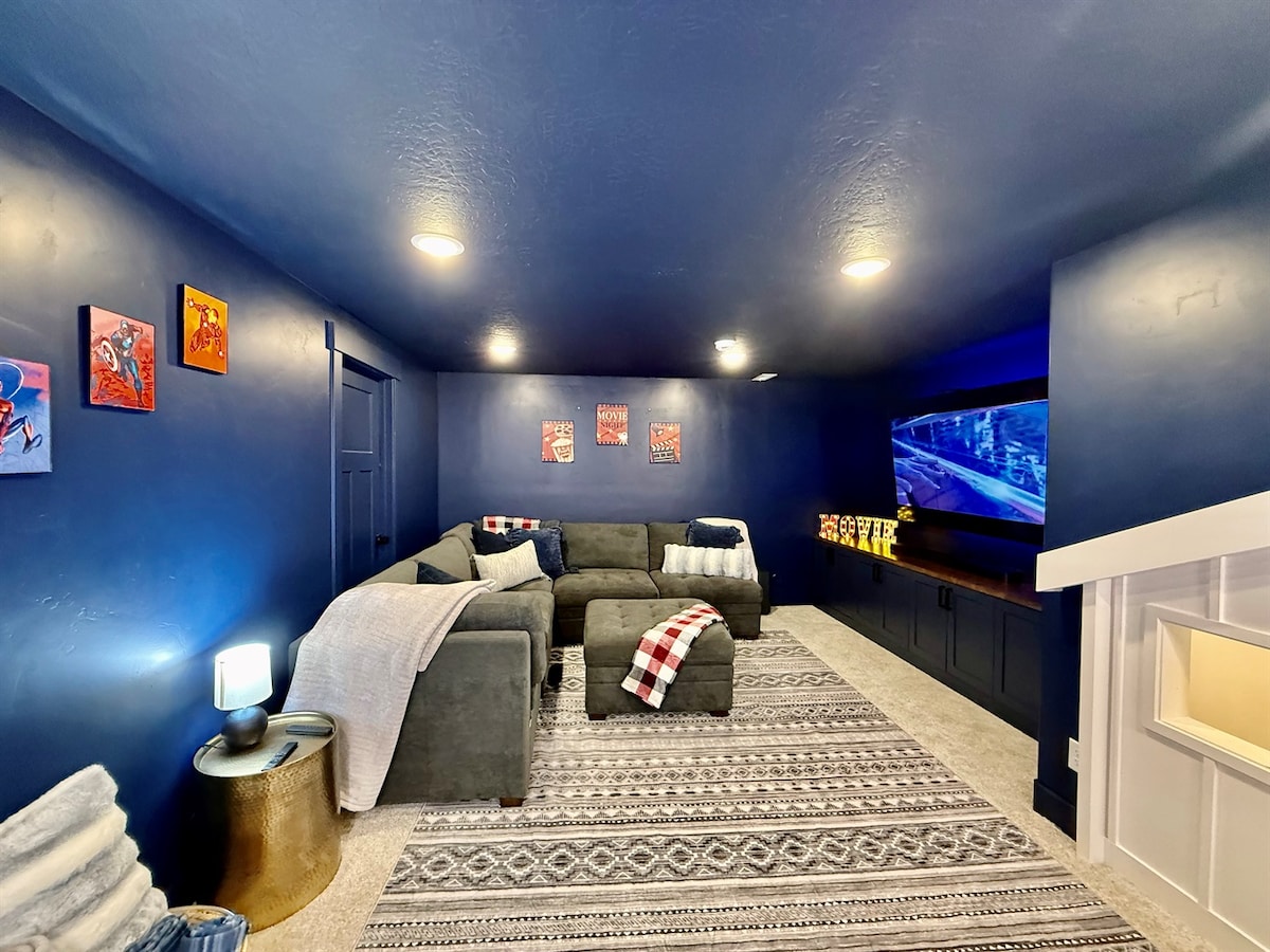 Bring the whole family to this great place with lots of room for fun! Entire basement suite with single car garage. Theater room for the tired nights of traveling and feel like playing games or watching a movie.Queen bed and memory foam futon bed. Wet bar w/ microwave, air fryer, mini fridge, coffee maker, Free wifi, Washer Dryer, Fireplace. Enjoy this unique basement designed for relaxing and having fun! 900 sq. ft. all to yourselves! Minutes from Usana amphitheater, Airport, and Downtown SLC