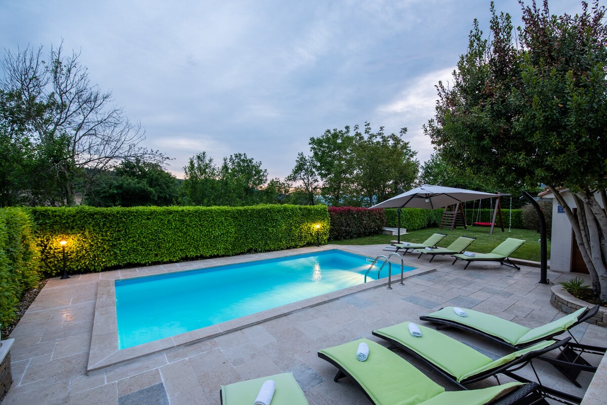 Circondata da 3000 m² di giardino privato recintato, con piscina privata e una vista spettacolare sulle valli e sulla natura nel cuore dell'Istria. Villa Krajcar è una casa vacanze arredata con gusto, con 2 camere da letto e 2 bagni, tutte al piano terra.