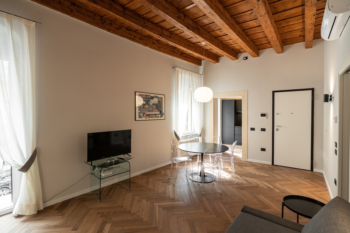 Location intima nel centro di Verona, tra Piazza delle Erbe e l’elegante Piazza pescheria. Gestito da me in persona, l’ alloggio è adatto sia alle coppie che vogliono trascorrere un soggiorno romantico, che per gruppi sino a 4 persone. Ideale per soggiorni prolungati essendo dotato di ogni comfort. Potete gustarvi un aperitivo od una cena a lume di candela nel panoramico balcone con vista su Palazzo di Cansignorio m e sul meraviglioso Gingko di oltre 200 anni, dei giardini di Piazza indipendenza
