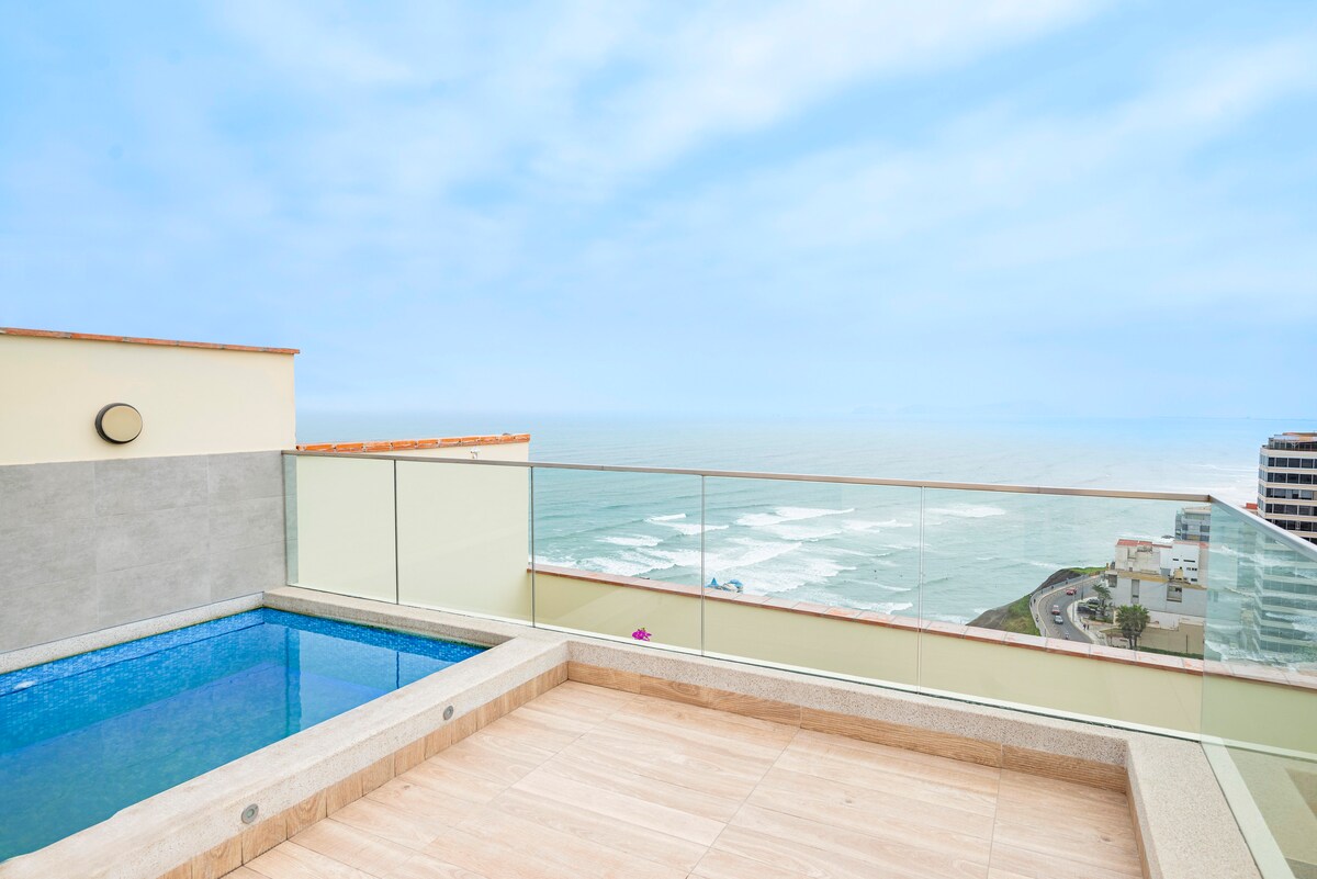 Ti diamo il benvenuto al tuo viaggio in Perù :). Questo appartamento appena ristrutturato spera di presentarti le quattro regioni (oceano, costa, altopiani e giungla). L'abbiamo progettato per rendere il tuo soggiorno confortevole con tutto ciò di cui hai bisogno. L'attico con 4 camere da letto ha una splendida vista parziale sull'oceano e sul lungo parco della Costa Verde. Situato in una zona residenziale più tranquilla e sicura, ma a pochi passi a piedi dai principali ristoranti, bar, luoghi culturali e vita notturna. Nessun parcheggio